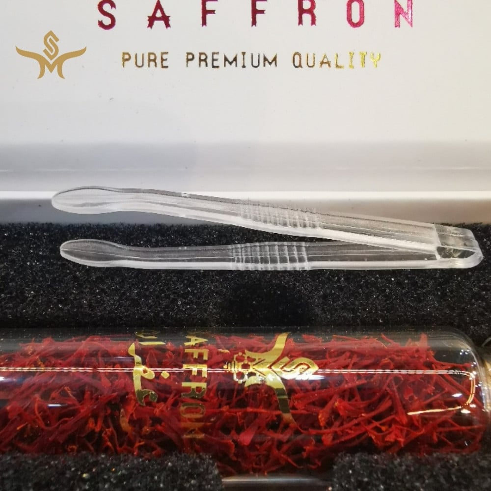 اجود وافخر انواع الرعفران لدينا واغلاها ثمناً، معبأ بأنبوبة راقية داخل صندوق فخم مع ملقط بلاستيكي.