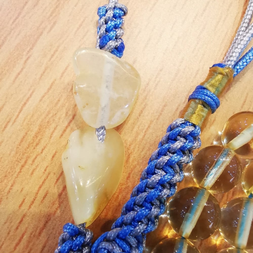 الشكة: كركوشة حرير تفصيل مطعمة بحجر الكهرمان الطبيعي.