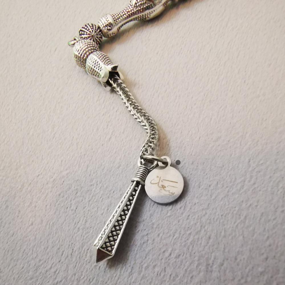 نرجو التواصل مع خدمة العملاء بالواتس اب 0558219414 في حال رغبتك في تغيير لون سلك المسباح او كتابة الاسم او تغيير نوع الشكة الخاصة بك (طرابزونة-تمليكة-شرابة- شرابة فضة-طرابزونة فضة او كركوشة) كما يمكنك اختيار نوع ولون سلك المسباح الذي، تختاره.